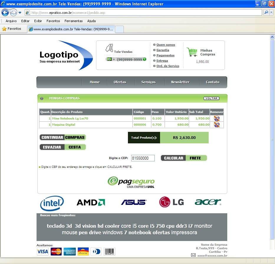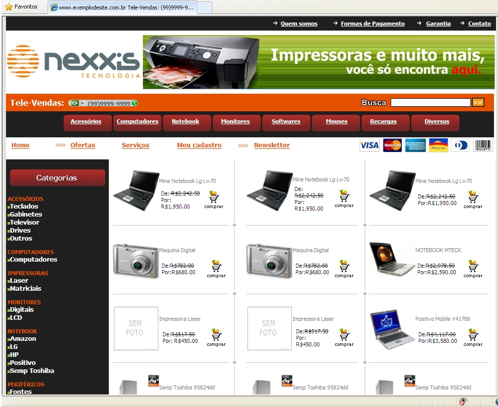 Formas de pagamento: